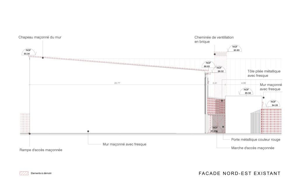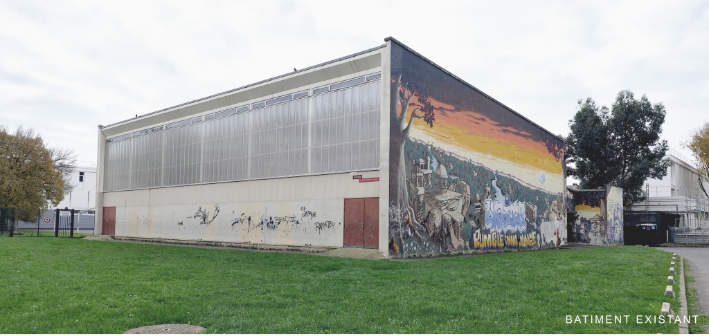 Le gymnase de la Ferme du Temple se distingue dans son territoire d’accueil par son caractère artistique et social, notamment représenté par la fresque présente sur la façade. L’œuvre de l’artiste sera recouverte dans le cadre du projet de réhabilitation, qui vise à améliorer la performance énergétique du bâtiment par une isolation par l’extérieur. Toutefois, cette dimension artistique sera retranscrire dans le nouveau projet afin de préserver l’esprit existant et la mémoire des lieux.